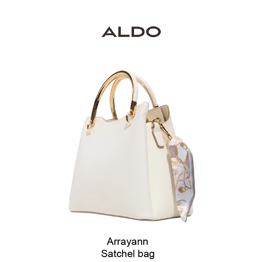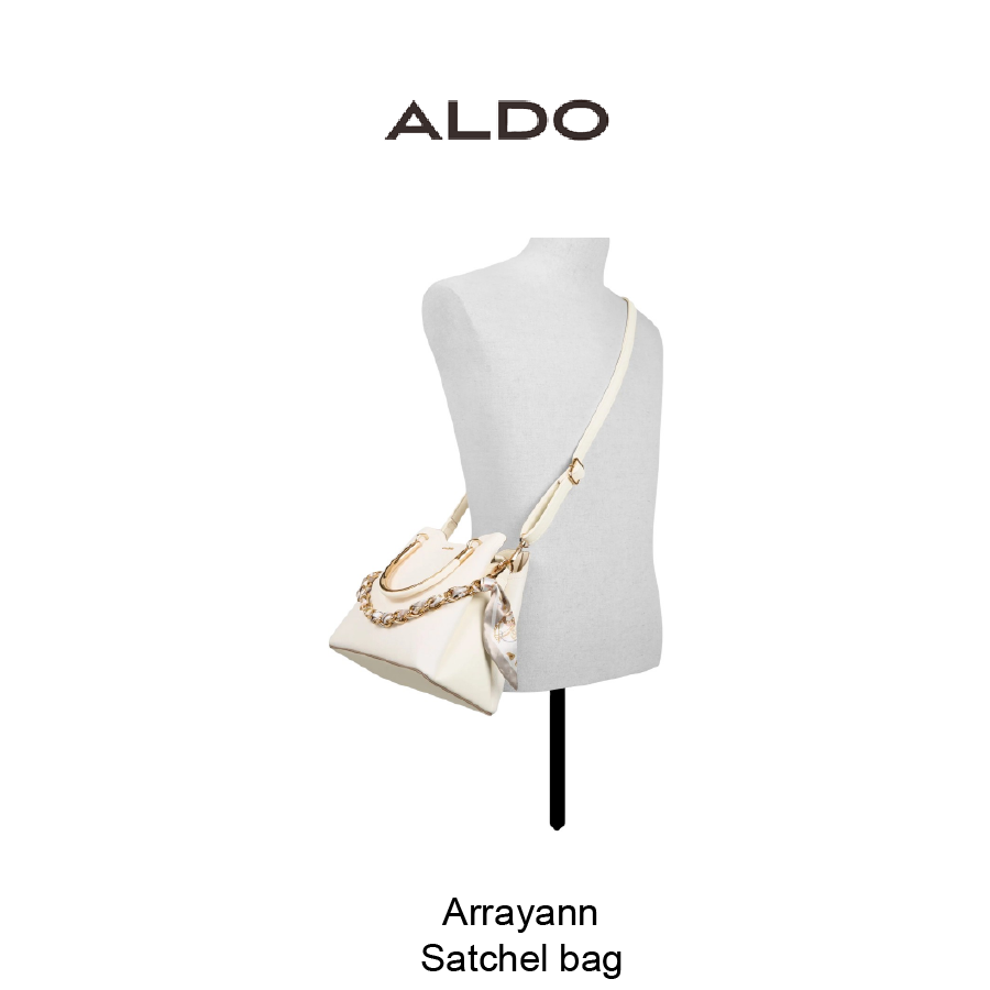 Gold-tone hoop handles rise from softly pebbled white leather, while a chunky chain with a removable silk-print scarf becomes a shoulder strap, giving this top-handle bag day-to-night flexibility. Carry it with a tailored blazer for coffee briefings or sling it over a slip dress at evening weddings to polish the look.