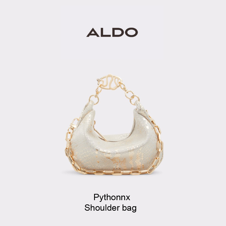 Snake-inspired accents and a bold decorative chain make this shoulder bag a true show-stopper.