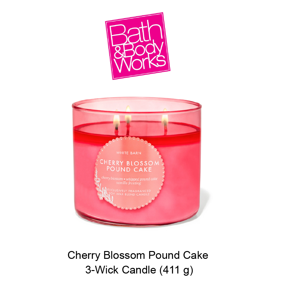 Fragrance notes: cherry blossom, whipped pound cake and vanilla frosting .